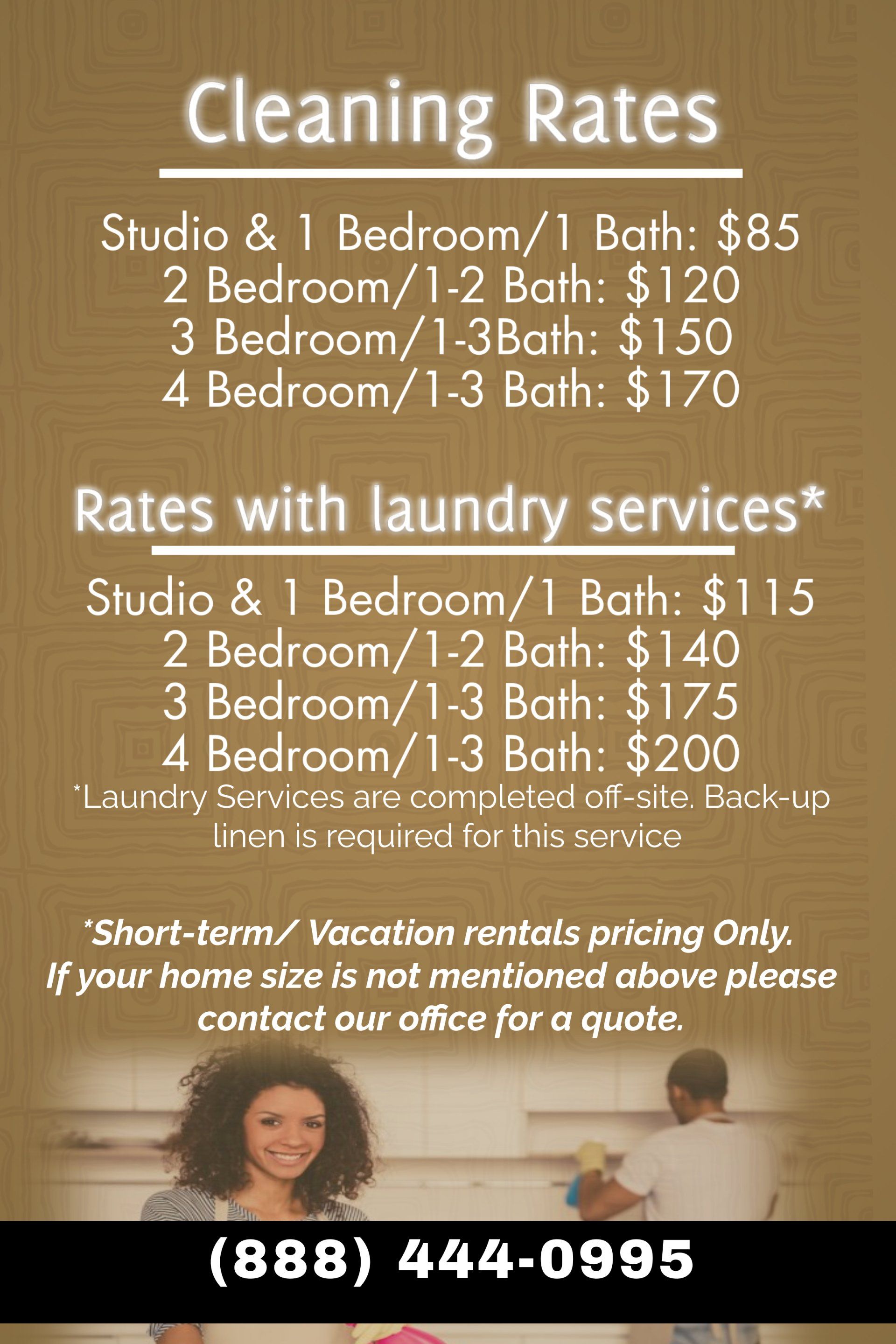 We clean the surrounding areas of pools/jacuzzis to insure guest are happy with their stay. Prices vary depending on size of pool and outdoor area, call to get a FREE quote.